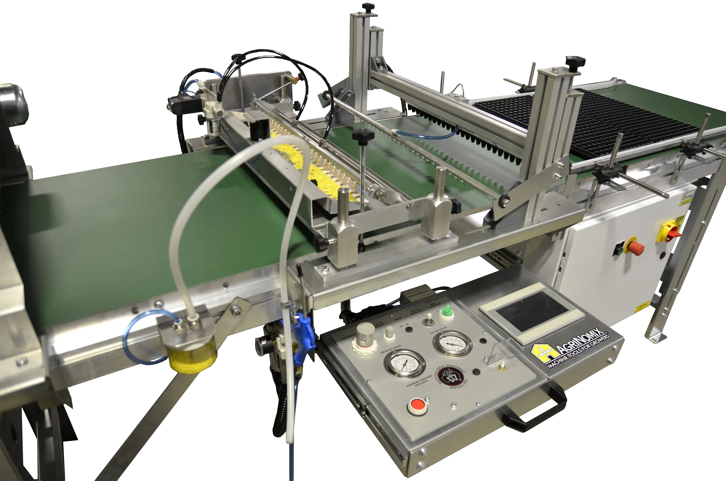 Averages 2 seconds per row for single seed placement on trays up to 24" wide.