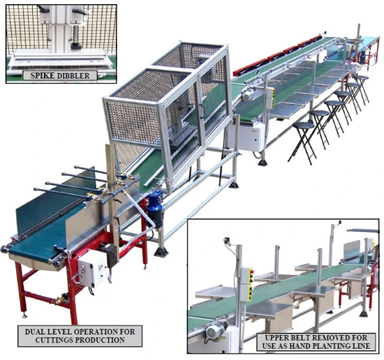 The Convertible Cuttings Line is an affordable in-line sticking and planting system for growers of all sizes. Automates tray feeding to create organized workstations, enabling workers to focus on tasks—case studies show up to 2x increase in output. Upper belt removes when not needed, converting to single-layer operation for various container types. Streamlined design minimizes downtime and maximizes productivity. Reduces manual handling and optimizes workflow to manage labor costs effectively.