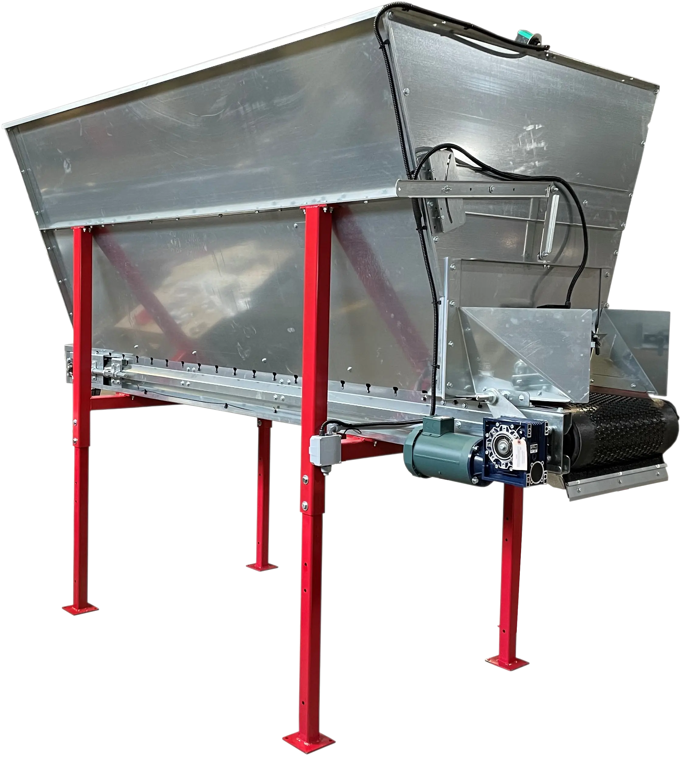 Our Recipe Blending System uses direct drive motors and gearboxes—no chains or sprockets to maintain. Conveyor belts ride on roller frames for longevity; components contacting fertilizer and mix are stainless steel. Multiple formulas run simultaneously through the recipe blending computer, delivering different mixes automatically to specific destinations. Delivery conveyors are custom-built to suit facility layout and existing equipment.