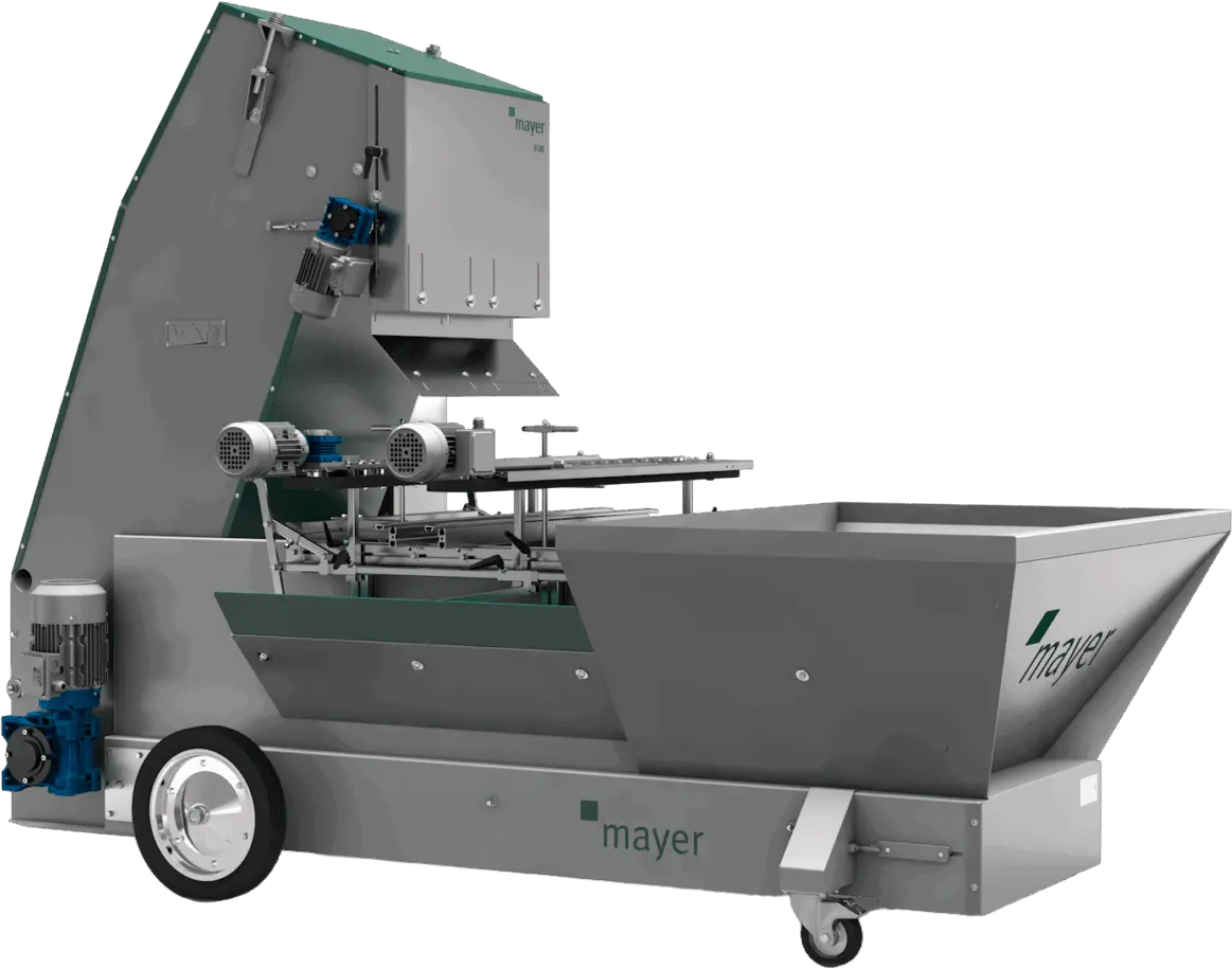 Top your pots with bark or other materials to reduce moss and weed growth for better-quality plants. Parallel belts rotate pots as they advance through the machine, ensuring even material distribution in each pot. A vibrating unit pushes excess material back into the hopper for reuse, while two spring-loaded scrapers remove persistent residue. Frequency-controlled motors adjust continuously for various pot sizes. Configurable for left or right side pot entry; integrates with potting machines.