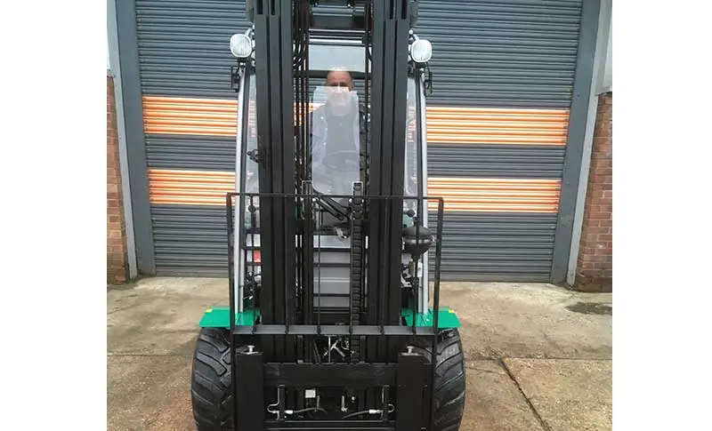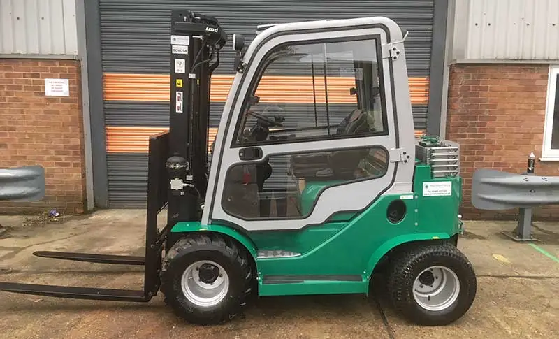 The Prins Tiger XL forklift delivers outstanding maneuverability and lifting capacity for nursery and greenhouse operations. Compact size navigates spaces conventional forklifts cannot reach. Available in 1000–1800 kg lifting configurations. Removable counterweights reduce ground indentation when full power isn't required. Kubota diesel or gas engine (36–38 kW) with torque converter transmission. Large tires with multiple profiles available. Ergonomic design reduces operator fatigue. Cab option.